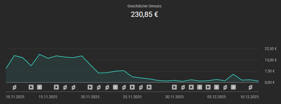 Monetarisiert bin ich seit dem 10. November 2025 – allerdings erst gegen Nachmittag. Das heißt, der erste Tag war kein voller Tag. Und trotzdem lagen die Einnahmen bereits ab Tag 1 über dem, was ich jemals erwartet hätte.