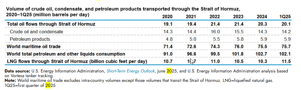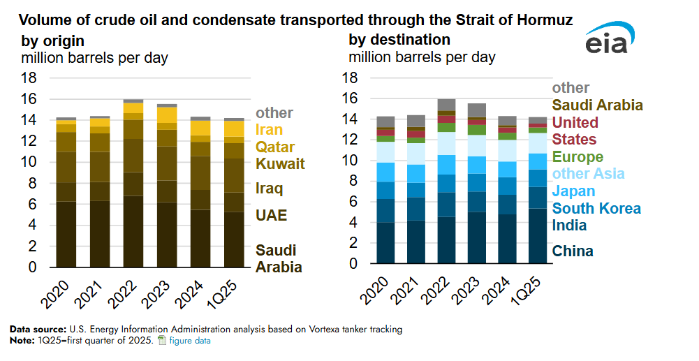 Nach Angaben der US Energy Information Administration liefen 2024 im Schnitt rund 20 Millionen Barrel Öl pro Tag durch diese Route. Das entspricht ungefähr 20 Prozent des weltweiten Verbrauchs an Petroleum Liquids und etwa einem Viertel des weltweiten maritimen Ölhandels. Beim Flüssiggas ist die Bedeutung ebenfalls enorm: 2024 gingen laut EIA rund 20 Prozent des weltweiten LNG-Handels durch die Straße von Hormus, vor allem aus Katar und den Vereinigten Arabischen Emiraten.