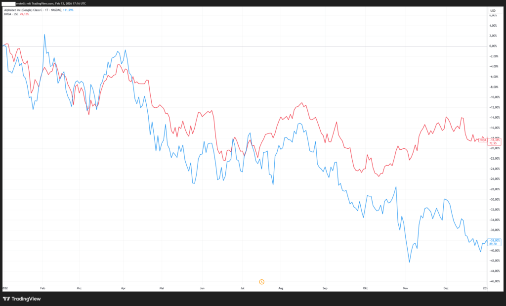 Breite Indizes wie der MSCI World sind deutlich robuster. Zwar sind sie stark USA- und Tech-lastig, aber sie bestehen aus hunderten Unternehmen. Während einzelne Titel massiv korrigieren, fällt der Gesamtindex oft deutlich weniger stark – beispielsweise um 18% im Jahr 2022.